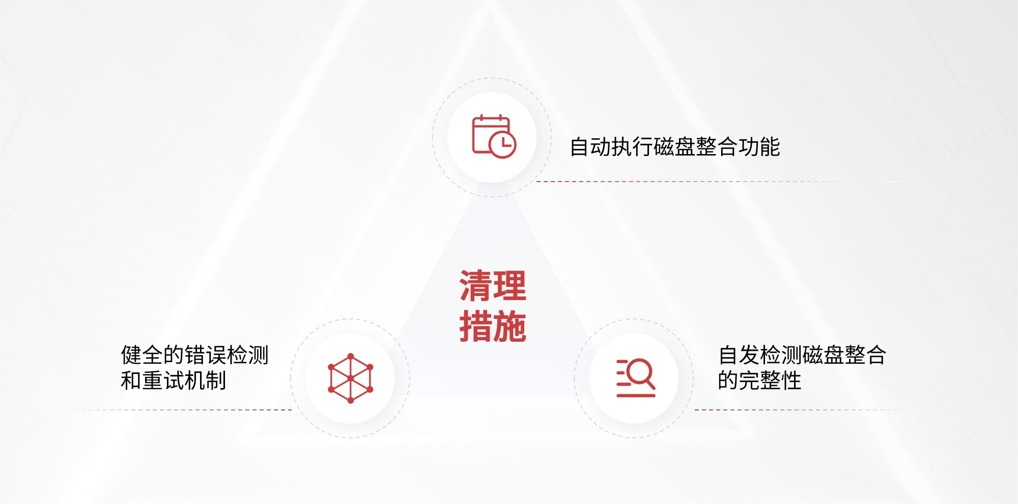 為了確保系統磁盤整合的完整性,鼎甲迪備實現了磁盤整合檢測機制。在快照成功刪除后,系統將主動檢查是否存在未整合的磁盤,若發現存在未整合的磁盤,系統將自動執行磁盤整合操作。