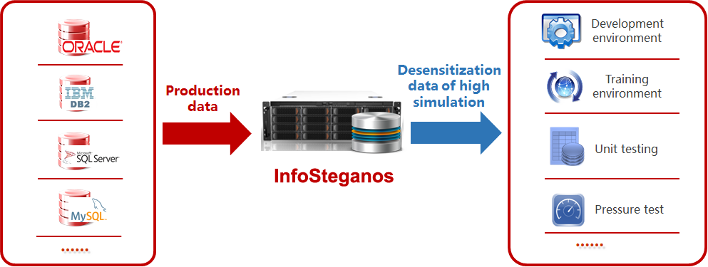 Requires the data desensitization system to auto-search sensitive information (such as: name, date of birth, address, identity, phone number, bank account) according to the sensitive information categorization principles to ensure secure use of client data in non-production environment, prevent sensitive information leak,meet the requirements of auditing and regulatory departments, etc.